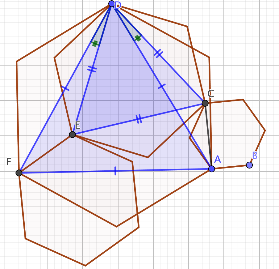 Now it becomes clear: DEC is an equilateral triangle, and DFA is an equilateral triangle, so EF = AC.