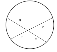 It involves a circle theorem that crops up in IGCSE but not at GCSE, relating to the lengths of the intersections of chords. If you have two intersecting chords of a circle (as pictured), the products of their parts are equal – that is to say, $mp = nq$ as drawn.