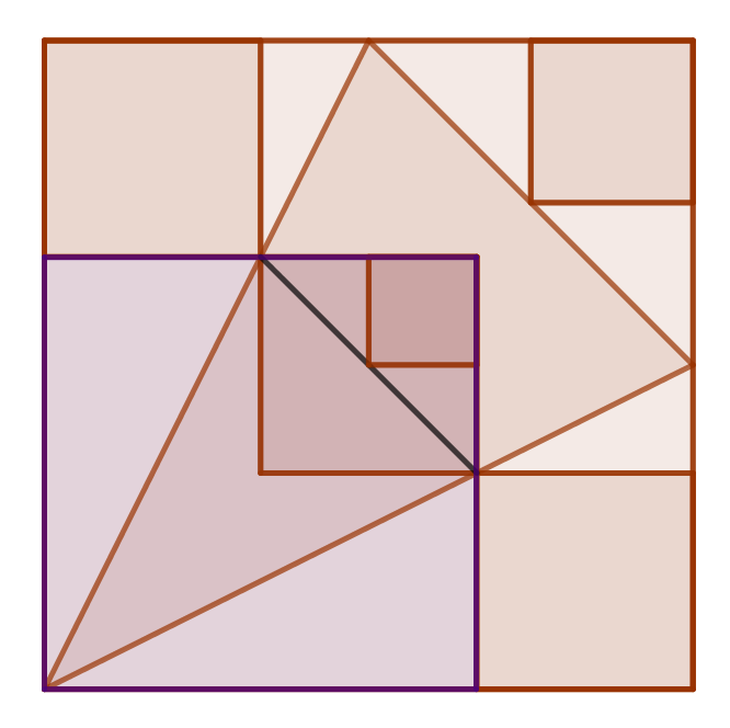 The insightful way - or rather, an insightful way, is to think about the purple square pictured. The oblique line I’ve drawn splits the middle square in half, so the square in the upper quarter has area 4.