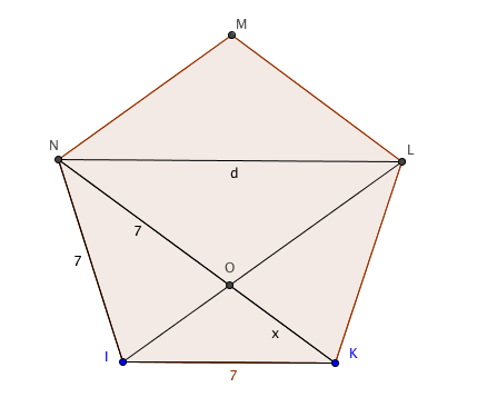 That’s the area of the triangle, so the area of the rhombus is $A = \frac{49}{2} \sqrt{\frac{5 + \sqrt{5}}{2}}$.